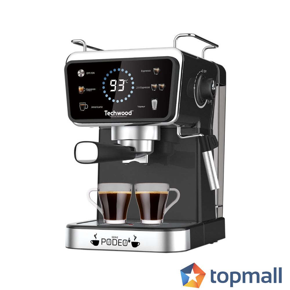 Еспресо машина Techwood TCA-1386EXN, 1350W, 20 bar, 1.5 л, 5 функции, Touch screen, Дюза за пара, Черен/Инокс, (35922842)