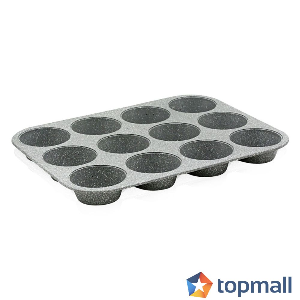 Форма за мъфини и кексчета ZEPHYR ZP 1223 GM, 12 гнезда, Мраморно покритие, Стомана, Сив, (18738)
