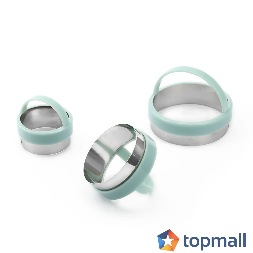 Форми за бисквити от неръждаема стомана с пластмасова дръжка Комплектът съдържа 3 размера в кръгла форма Подходящи за съдомиялна машина