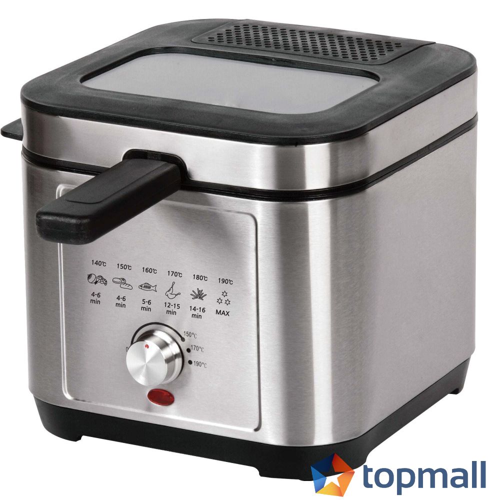 Фритюрникът е оборудван със свалящ се капак с голям прозорец и филтър, които намаляват пръските и миризмите, като същевременно ви позволяват да следите процеса на готвене. Благодарение на незалепващия резервоар с вграден нагревател, уредът загрява бързо и осигурява равномерно пържене с минимално усилие.