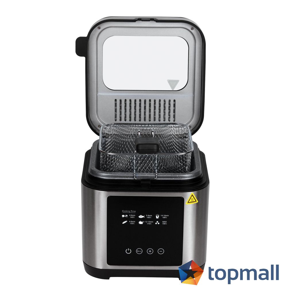 ✅ Дигитално управление за по-прецизен контрол ✅ Бързо загряване и равномерно пържене ✅ Елегантен и модерен дизайн с метален корпус ✅ Безопасност при готвене – капак с прозорец и филтър ✅ Лесен за почистване – незалепващ резервоар