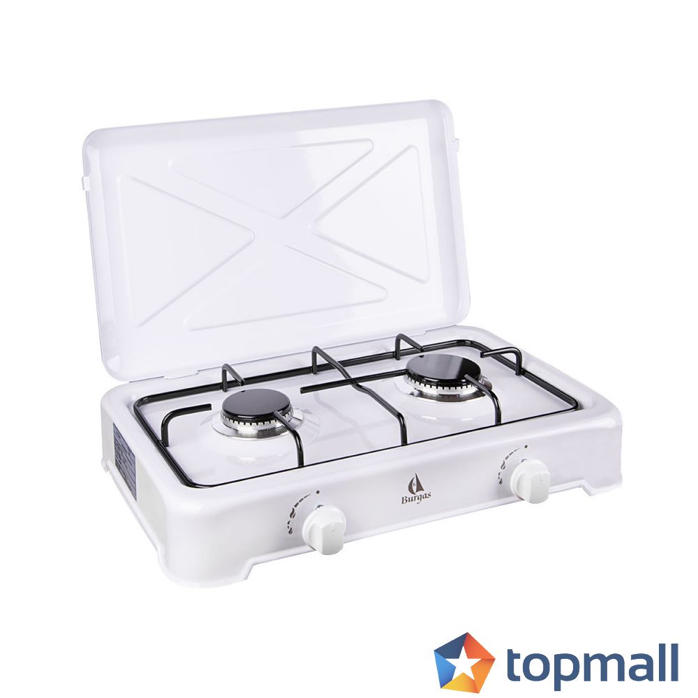 Газов котлон с две нагревателни зони Burgas BRG102W, 3400 W, Подвижен капак, Бял, (12924)