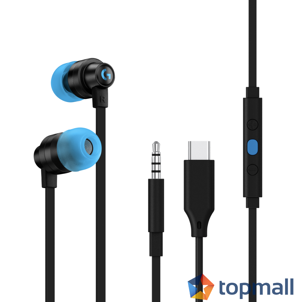 Геймърски слушалки с микрофон Logitech G333 In-ear 3.5 mm + USB-C adapter, тапи жични, черни, (35934364)