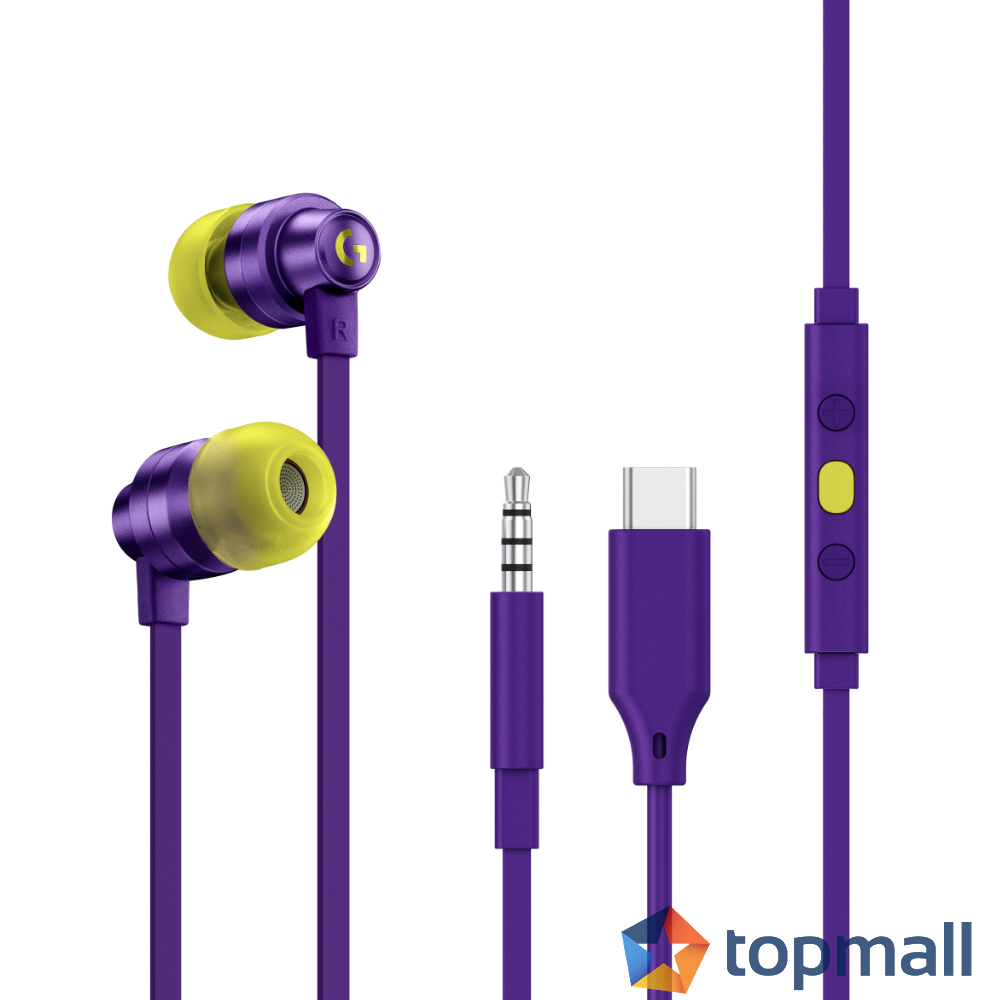 Геймърски слушалки с микрофон Logitech G333 In-ear 3.5 mm + USB-C adapter, тапи жични, лилави, (35934576)
