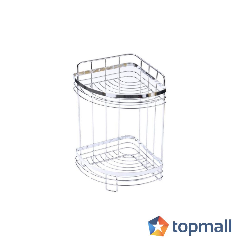 Ъглова етажерка на 2 нива Rosberg R53001A2, 21х21х39 см, Дюбел, Стенен монтаж, Хром, (20317)