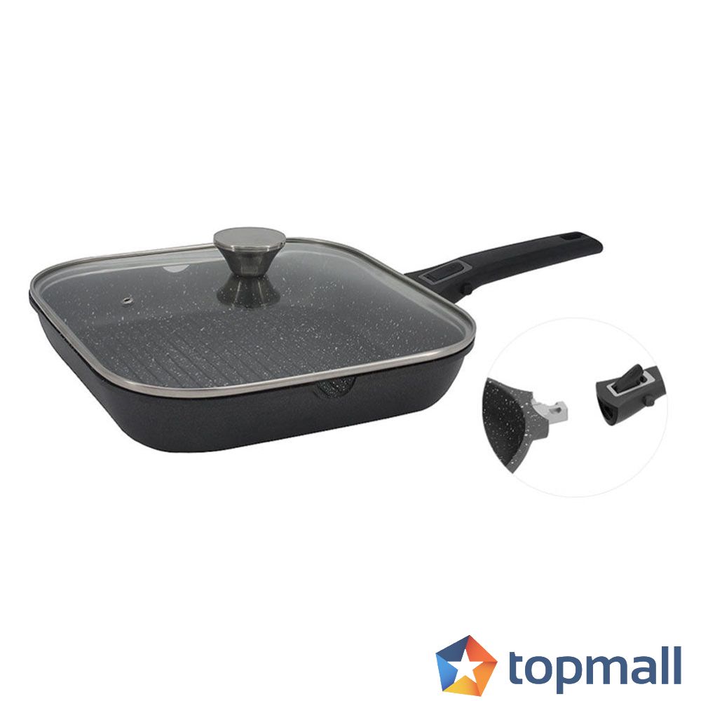 Грил тиган с капак и махаща се дръжка ZEPHYR ZP 4316 28NC, 28 см, Мраморно покритие, Индукция, Черен, (18098)