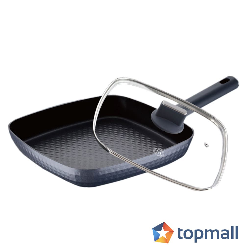 Грил тиган с капак Peterhof Meisterklasse Diamond MK 1038-30, 30x30 см, Гранитно покритие, Релеф диамант, Индукция, Сив