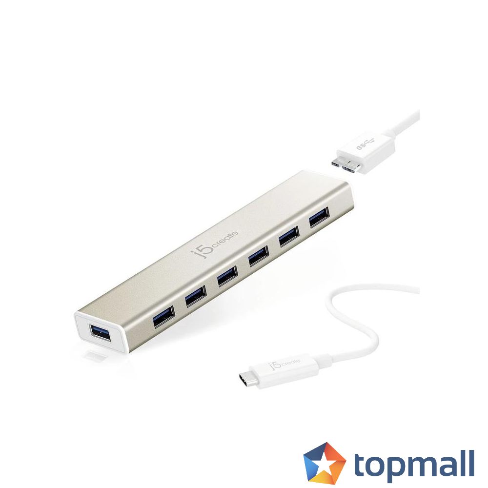 Хъб 7-портов J5 Create USB-C JCH377, USB 3.0, 1:7, Бял, (35934278)