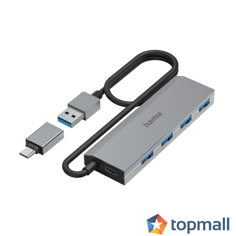 HAMA 4-портов хъб, USB 3.2 Gen 1, 5 Gbit/s, USB-C адаптер, авт. захранване, (35935982)