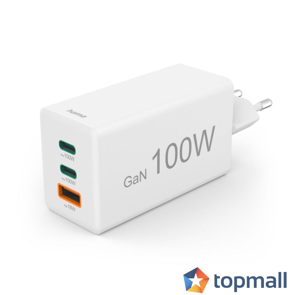 HAMA Бързо зарядно 220V, 100 W GaN, 2x USB-C PD, 1x USB-A QC, (35938111)