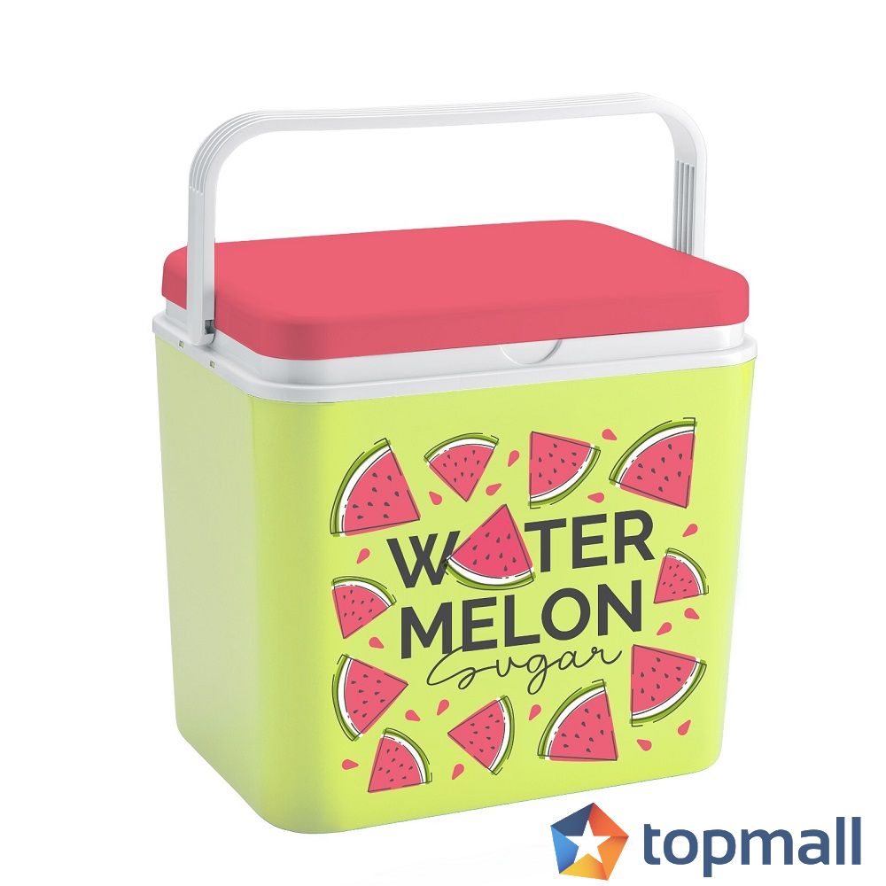 Подходяща за съхранение и охлаждане на храни и напитки при излети и пътувания, не е подходяща за професионална употреба За да подобрите ефективността и продължителността на поддържане на продуктите охладени: - избягвайте да поставяте на пряка слънчева светлина и използвайте охладители (предлагат се отделно). - поставете предварително охладени в хладилник напитки и храни. Вместимост: 30L Размери: 40x33xH38cm Със забавен и свеж декор Изработена от полипропилен