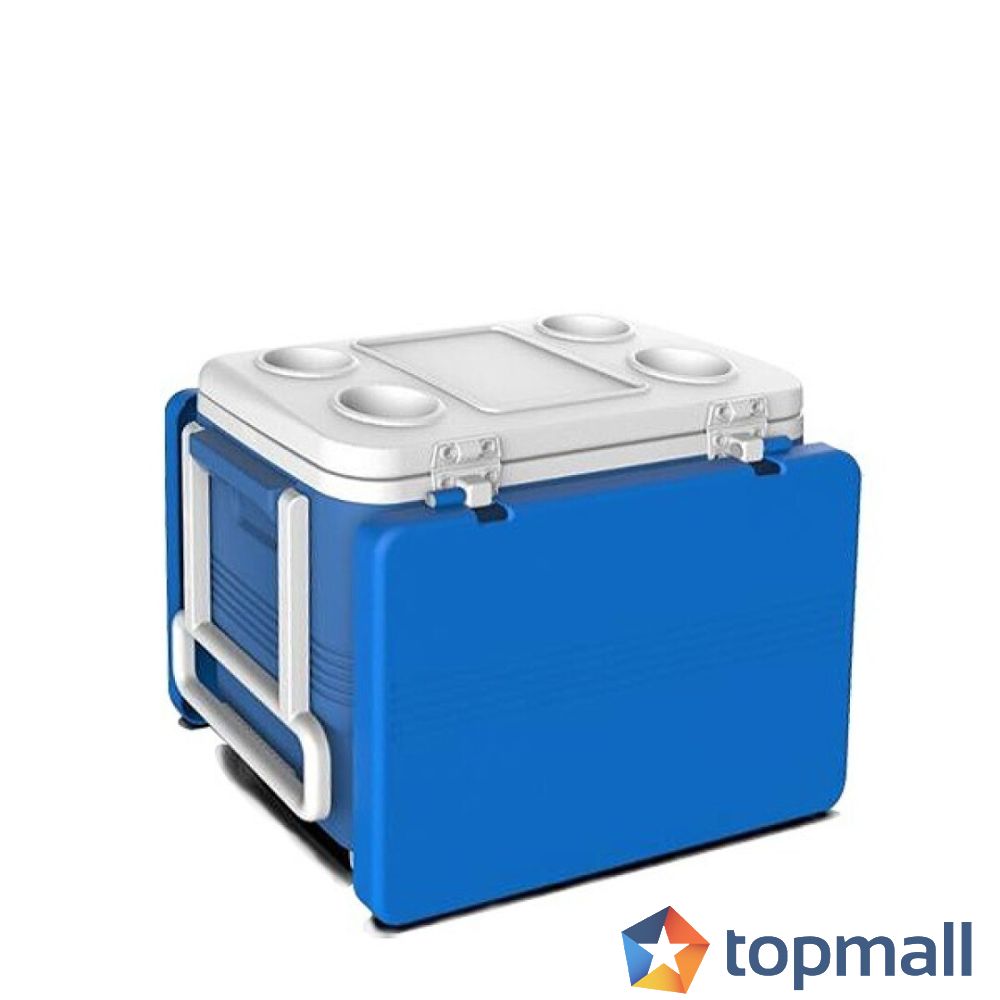 Подходяща за съхранение и охлаждане на храни и напитки при излети и пътувания, не е подходяща за професионална употреба С разтегателни страници, които оформят маса/помощен плот и поставки за чаши на капака. За да подобрите ефективността и продължителността на поддържане на продуктите охладени: - избягвайте да поставяте на пряка слънчева светлина и използвайте охладители (предлагат се отделно). - поставете предварително охладени в хладилник напитки и храни. Вместимост: 45L Размери: 60x47xH40cm Изработена от полипропилен