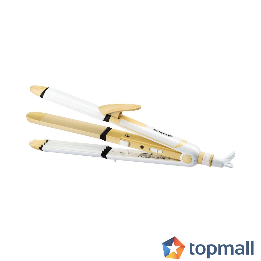Преса за коса 3в1 Hausberg HB-31AU, 45W, Изправяне, къдрици и вафли, Керамично покритие, Бял/златист, (9999HB31AU)