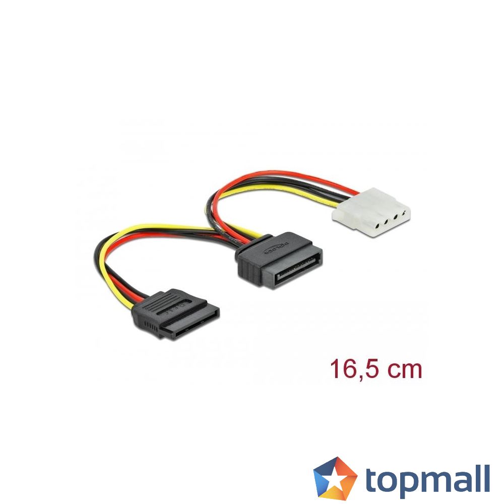 Кабел DeLock SATA 15 pin мъжко към Molex 4 pin женско + SATA 15 pin женско, (35934730)