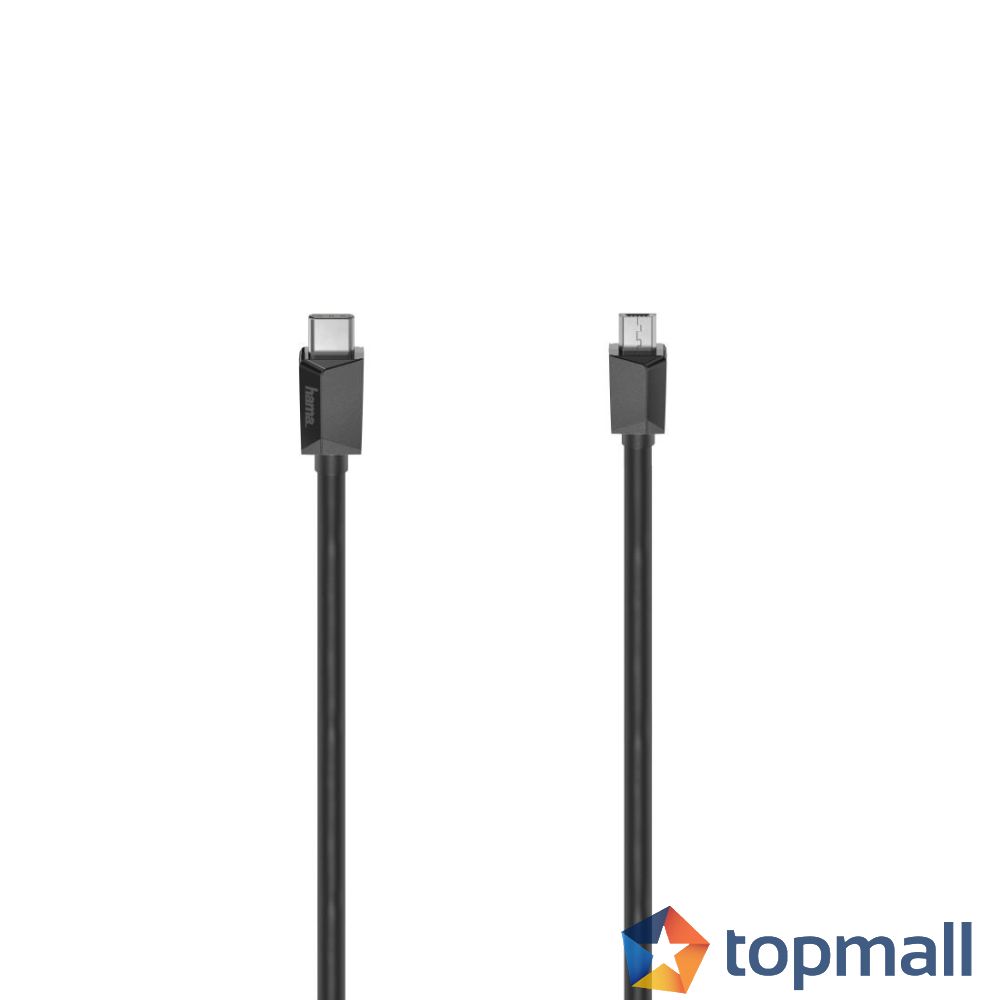Кабел HAMA, USB-C мъжко - micro USB B мъжко, 480Mbit/s, 0.75 м., Essential, Черен, (35935263)