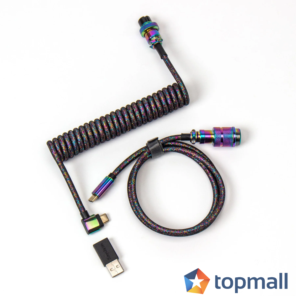 Кабел за клавиатура Keychron Colorful Premium Coiled Angled, USB-C - USB-C, Rainbow Plated Black, (35936255)
