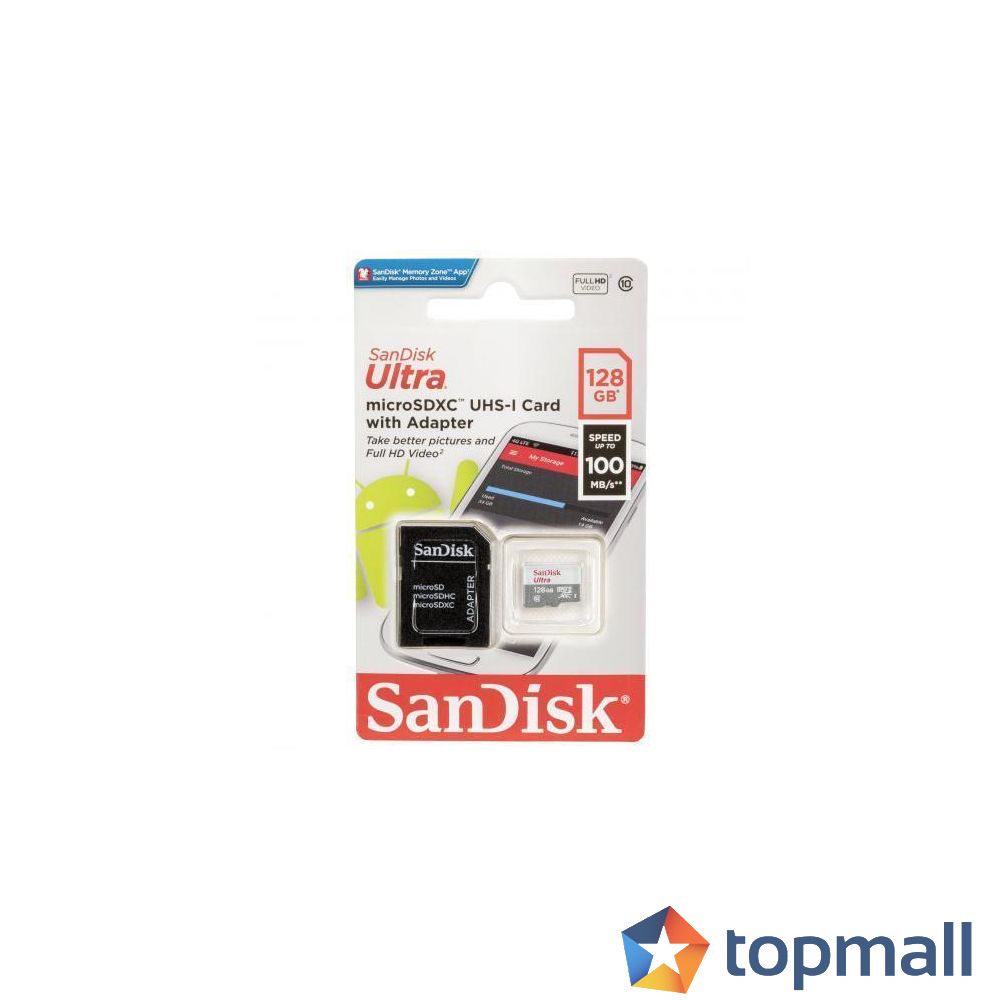 Карта памет SANDISK Ultra microSDHC UHS-I, 128GB, Class 10, 100Mb/s, Адаптер, (35934895)