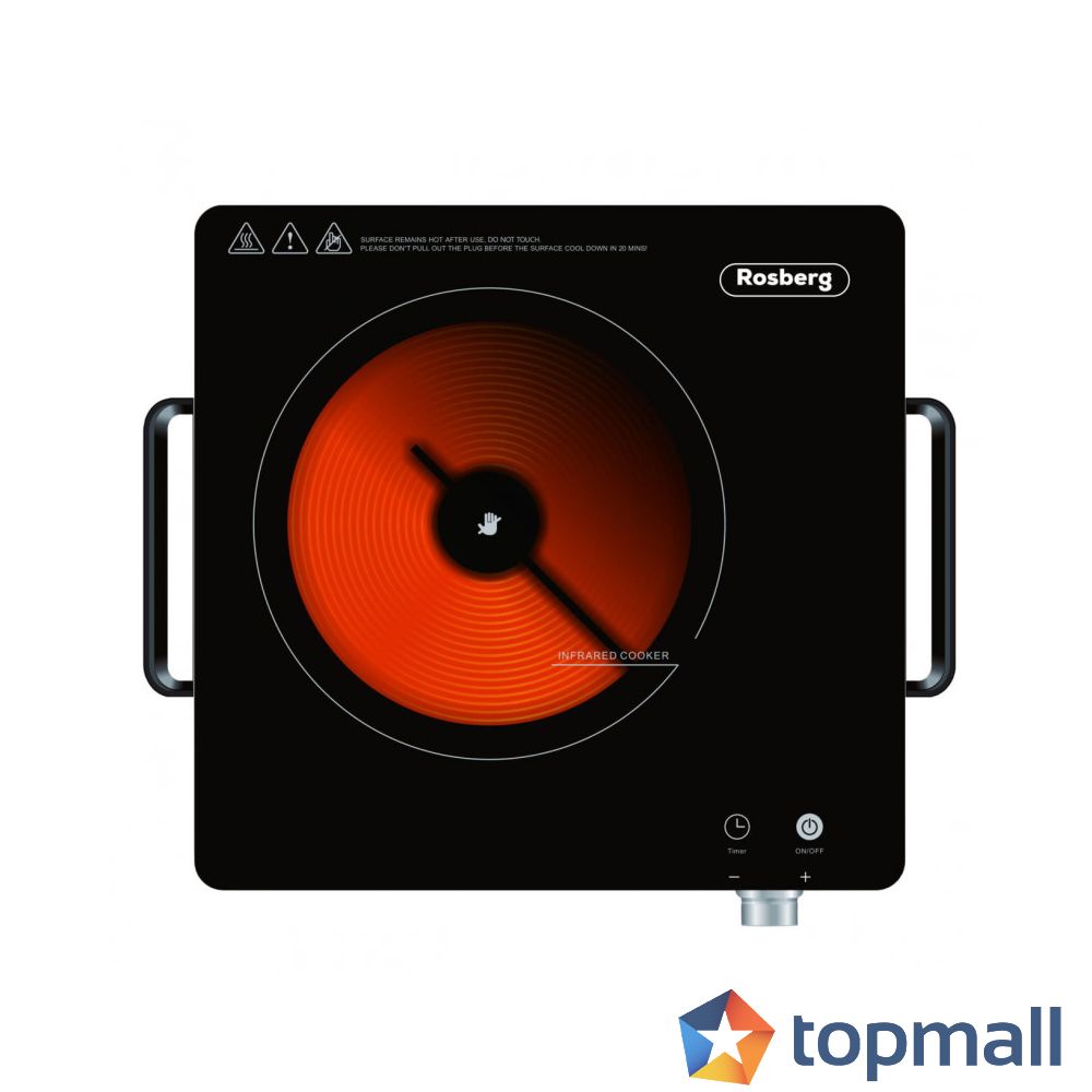 Керамичен котлон Rosberg R51445F, 2000W, 10 нива, Инфрачервен, Таймер, Черен/инокс, (555R51445F)