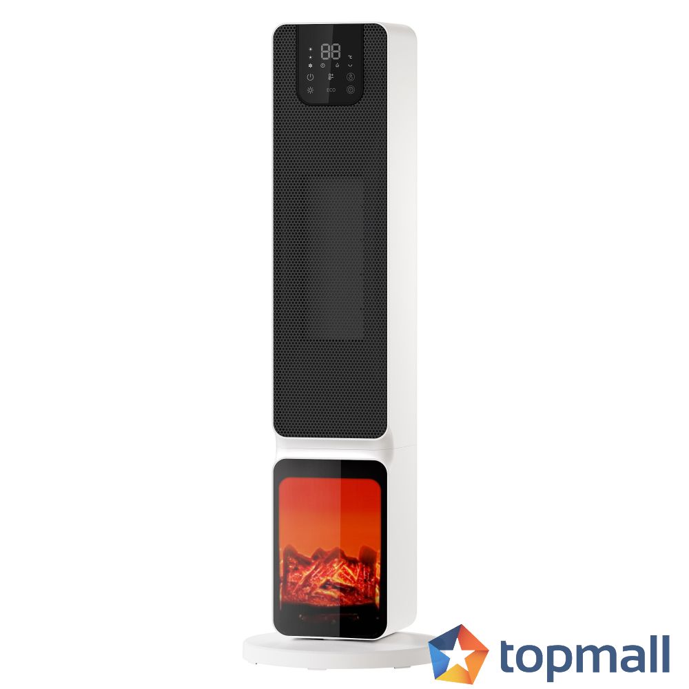 Керамична печка с две степени на мощност. Лесно управление с дистанционно и LED Дисплей. Осцилация. Декоративен ефект на пламък за създаване на уют. С функция ECO и защита от прегряване и преобръщане.