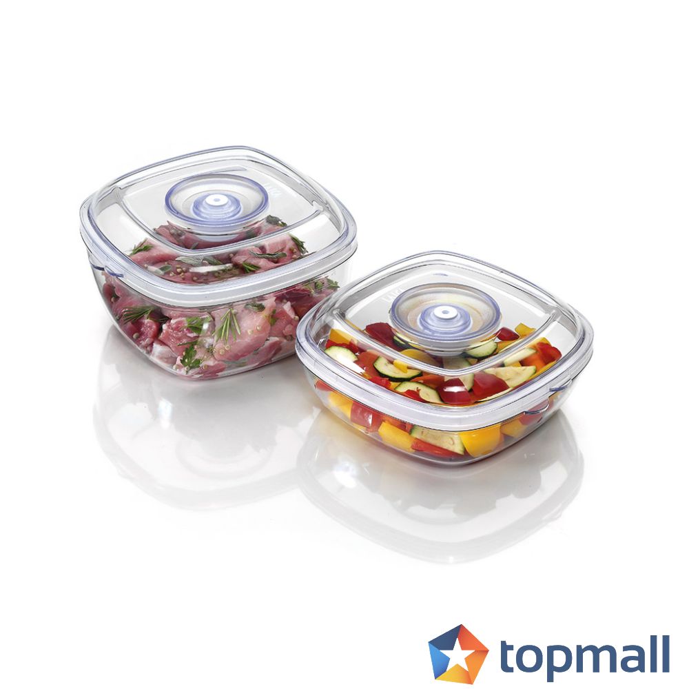 Комплект от 2 кутии за свежо съхранение на продукти, подходящи за използване в хладилник и в кухненски шкаф. В тях може да се съхраняват различни продукти (кафе, захар, подправки), сухи храни (сладки, сушени плодове, ядки, макаронени изделия), деликатни плодове, зеленчуци и др.