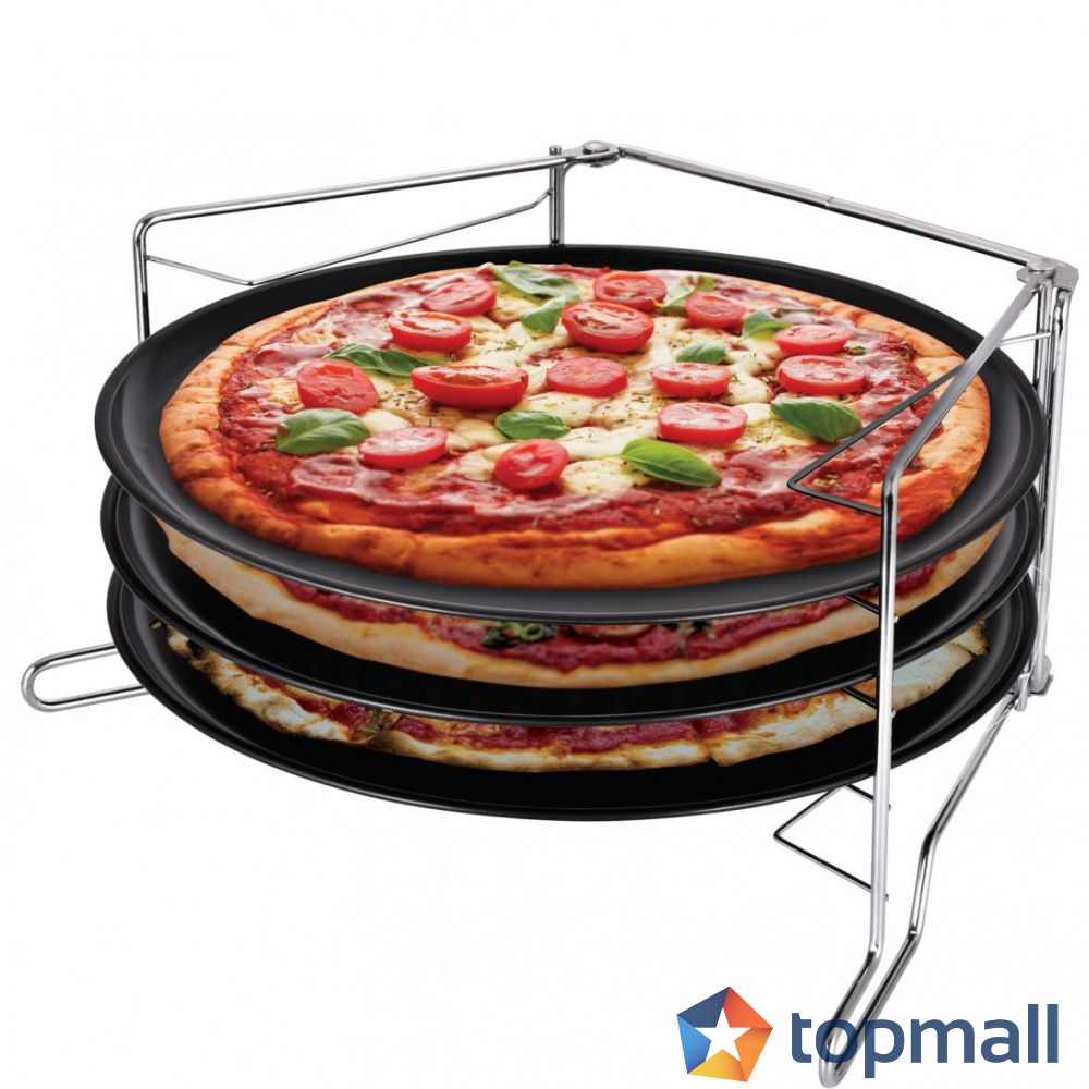 Комплект 3 тави за пица и поставка KingHoff KH 1480, Незалепващо покритие, Черен