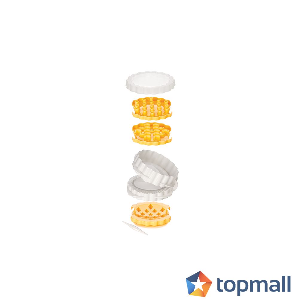 Предназначена за сладки и солени тестени изделия с капаче тип "мрежа" Включва три различни резеца за мрежа Изработена от устойчива пластмаса Размери: 11.5x12.5xH6cm. Подходяща за почистване в съдомиялна машина Гаранция за физически лица: 3 години Включени инструкции и рецепти