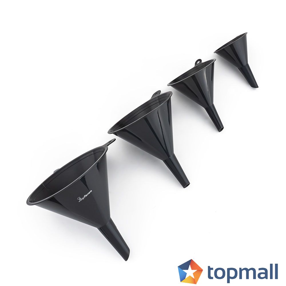 Комплект сет пластмасови фунии, 4 броя Сетът съдържа: 5.5x8 cm 7.5x10 cm 10x13.5 cm 12x14.5 cm Подходящи за прехвърляне течности без разливане Всяка фуния има идеално тесен накрайник, който пасва на повечето гърла на бутилки, за да се избегне разливане Лесно почистване Подходящ за съдомиялна машина