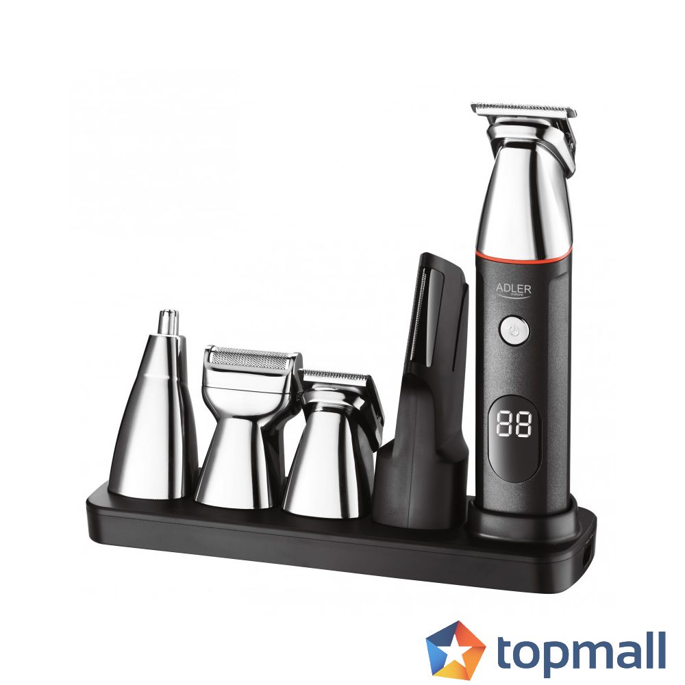Комплект грижа за мъже 5в1 Adler AD 2946, 600 mAh, 6 приставки, 60 мин автономия, LCD дисплей, Черен/инокс, (20616)