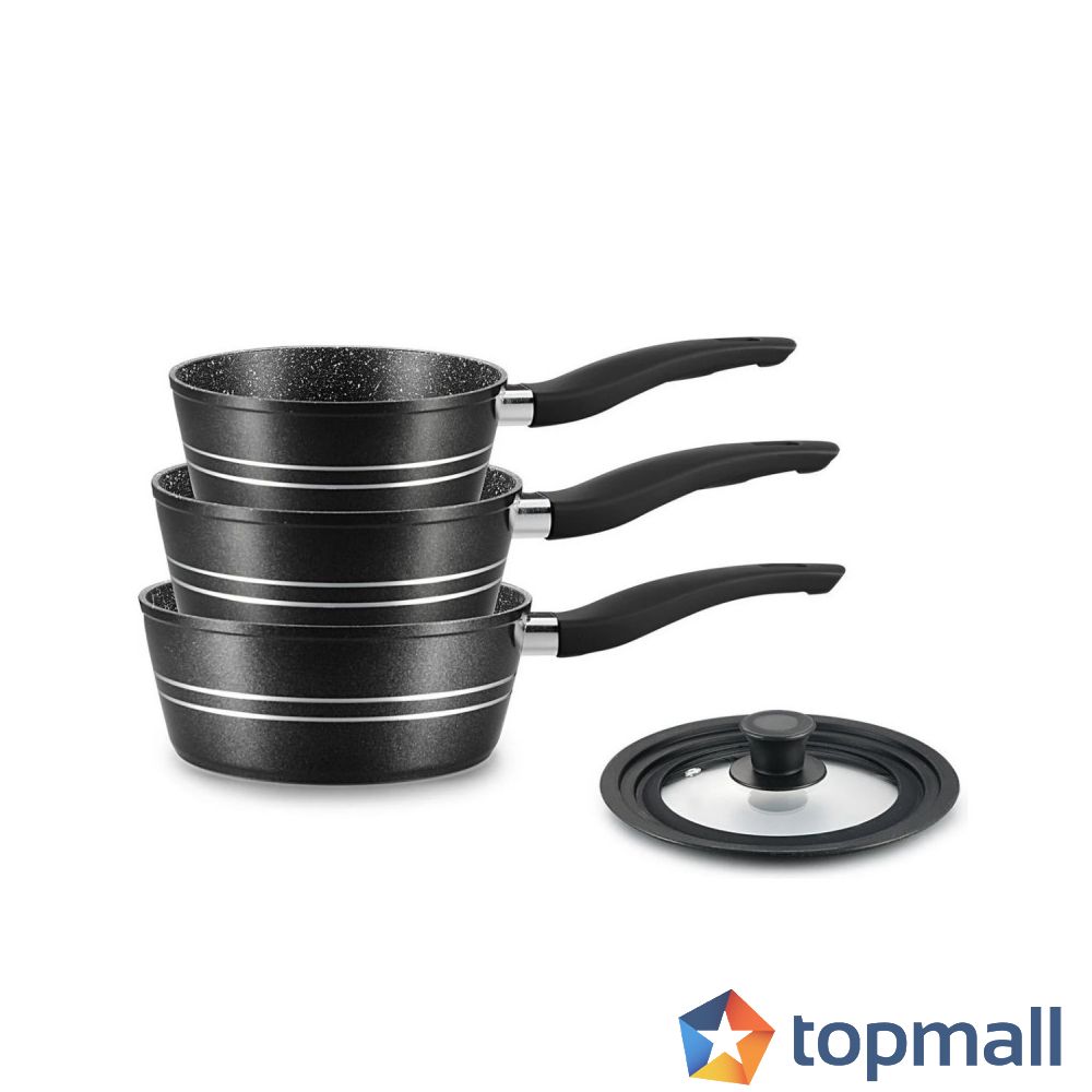 Комплект касероли Royalty Line RL-FS3M BLACK, 3бр., Незалепващо покритие, Без PFOA, Студени дръжки, Индукция, Черен, (35922499)