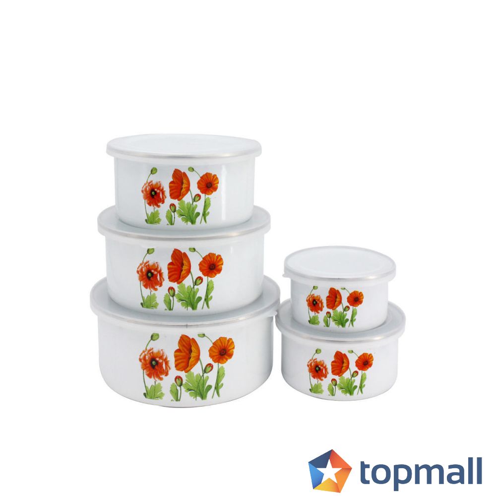 Оценете:Комплект кутии за съхранение Rosberg R51212B5, 5 части, Емайлирани, Бял/декорация, (55R51212B5)