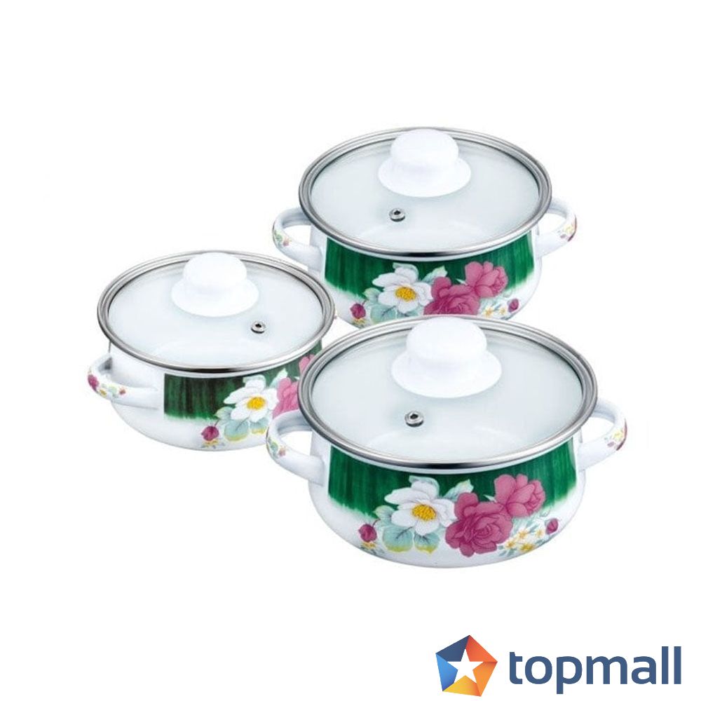 Комплект мини тенджерки PETERHOF PH 15867, 6 части, 0.5/0.75/1.25 литра, Индукция, Емайл, Бял с цветя, (18398)