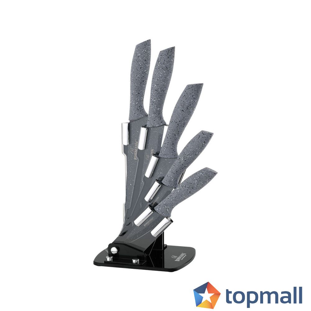 Комплект ножове Bohmann BH 5255, 5 броя, Мраморно покритие, Акрилна поставка, Сив, (9999BH5255)