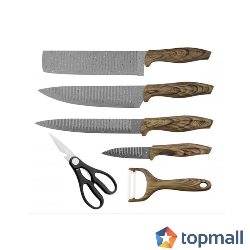 Оценете:Комплект ножове HausRoland HR001-1, 6 части, Белачка и ножица, Гумена дръжка, Кафяв, (17812)
