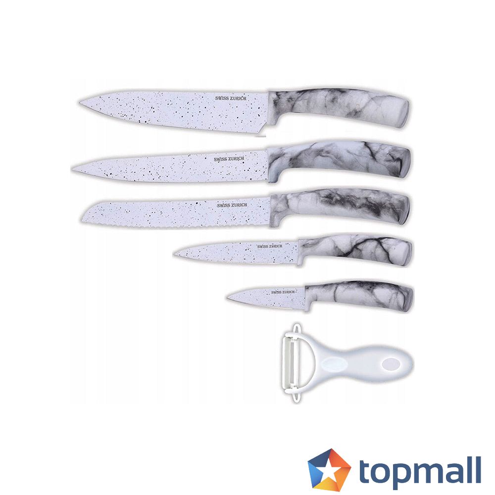Комплект ножове и белачка SWISS ZURICH SZ 7348, 6 части, Стомана, Бял мрамор, (18393)