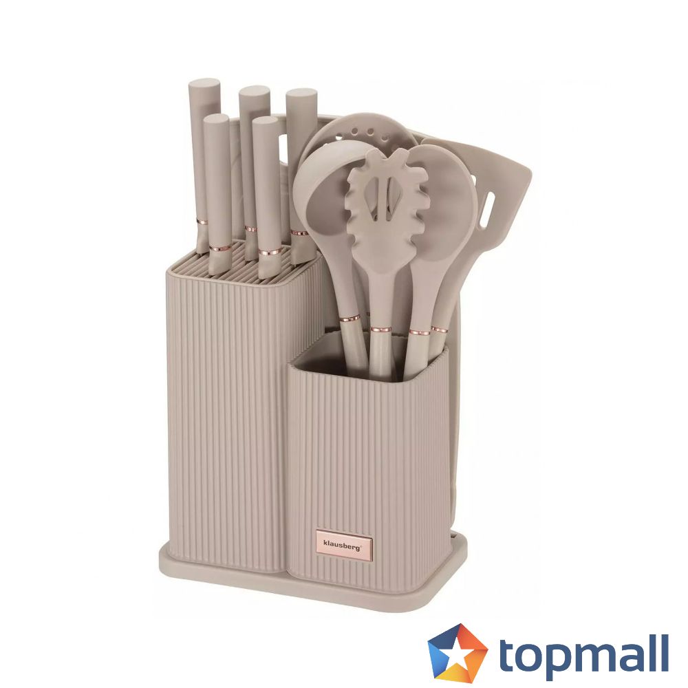 Комплект ножове и прибори Klausberg KB 7935, Дъска и стойка, 12 части, Бежов, (35944507)