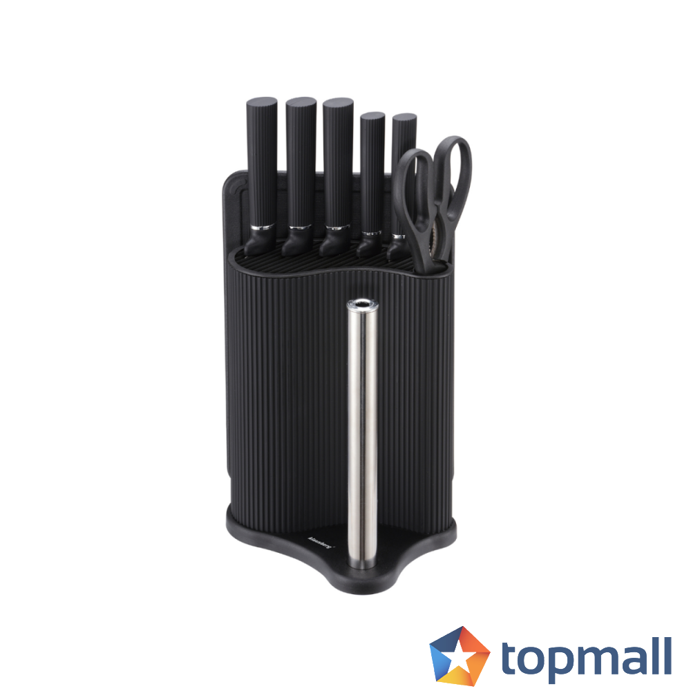 Комплект ножове Klausberg KB 7977, 8 части, Неръждаема стомана, Стойка, Държач за кухненска хартия, Черен, (35946044)
