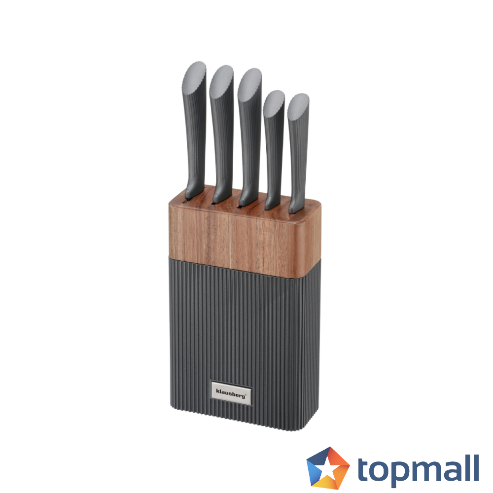 Комплект ножове Klausberg KB 7979, 6 части, Неръждаема стомана, Стойка, Графит/кафяв, (35946046)