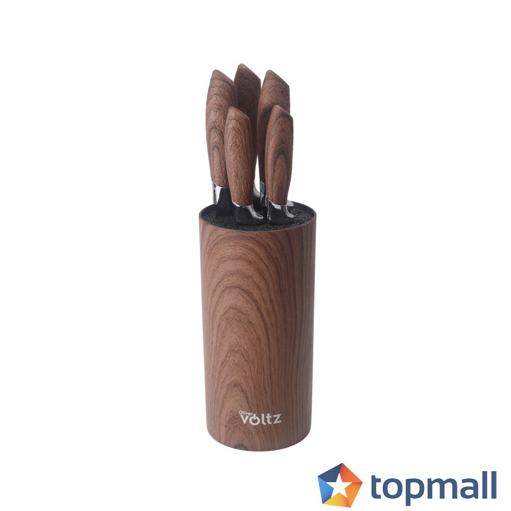 Комплект ножове Oliver Voltz OV51633G5, 6 части, Мраморно покритие, Поставка, Кафяв, (21333)