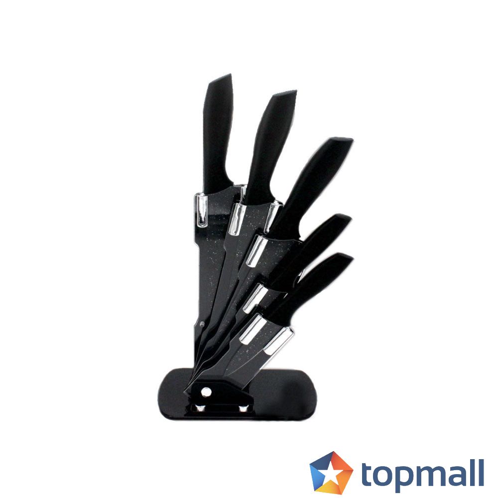 Комплект ножове с поставка ZEPHYR ZP 1633 BS5AS, 6 части, Неръждаема стомана, Мраморно покритие, Черен, (18371)
