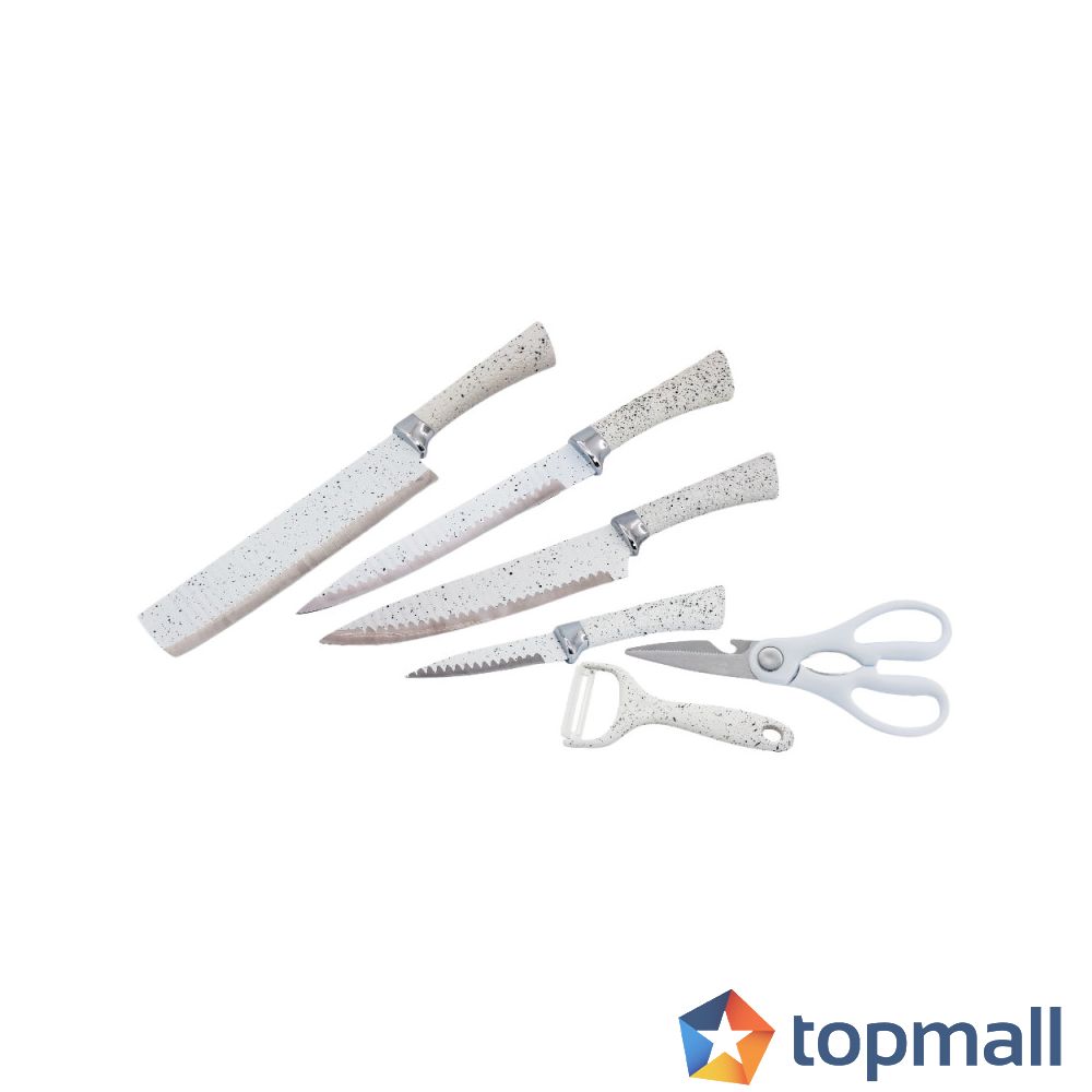 Комплект ножове в магнитна кутия Voltz V51633D6G, 6 части, Белачка, Ножица, Мраморно покритие, Сив/Бял, (5V51633D6G)