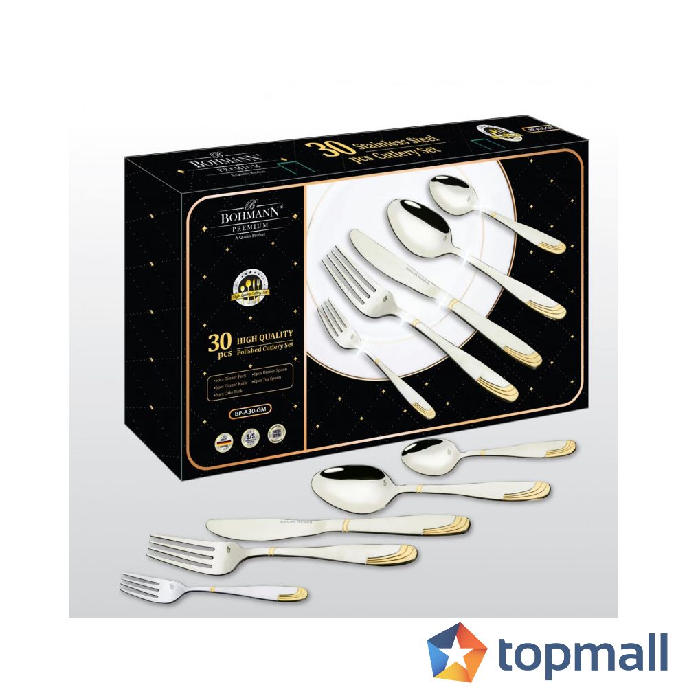 Комплект прибори за хранене Bohmann BP A30-GM, Кутия, 30 бр, Инокс/златист, (19169)