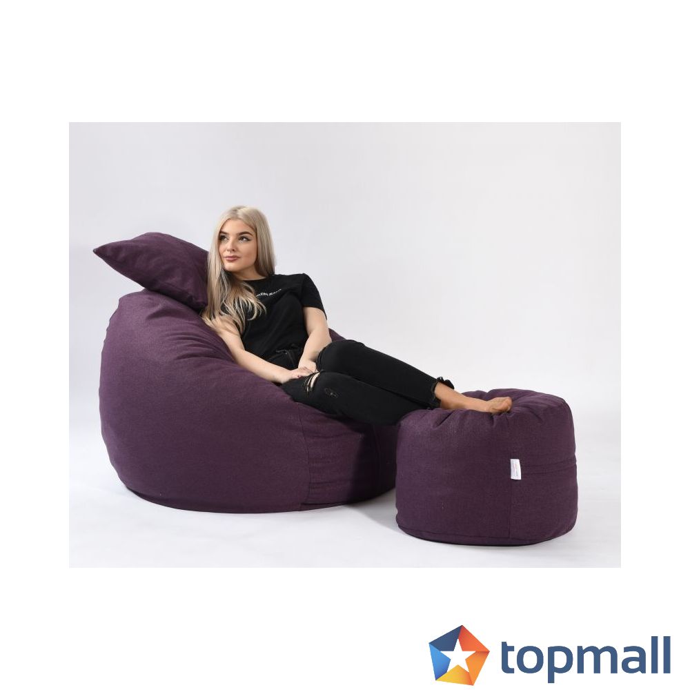 Комплект Pufrelax барбарон, с табуретка за крака и декоративна възглавница, Размер M, Matusalem, Fancy Purple, Гама Premium, Перящ се текстилен калъф, Подходящ за деца от 5 - 18 год, Пълнеж с микс от мемори пяна и дунапрен