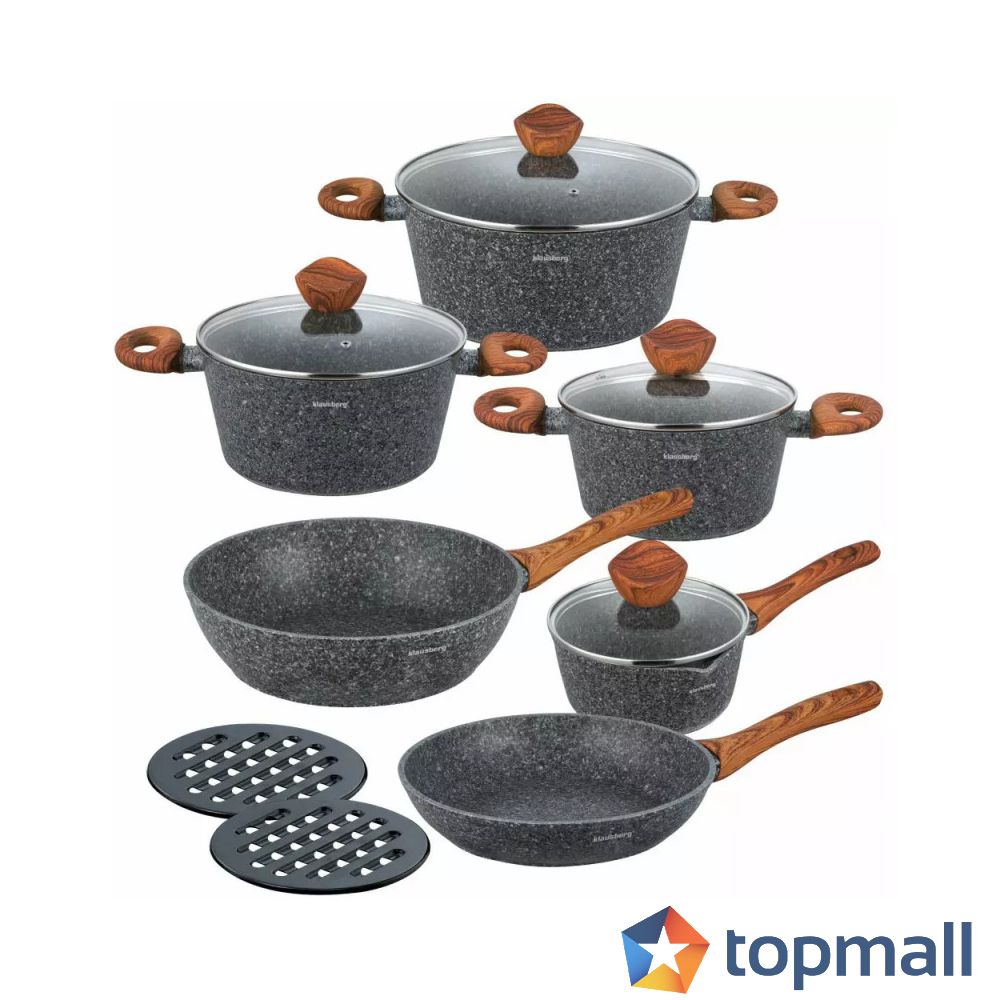 Комплект съдове за готвене Klausberg KB 7242, 12 части, Гранитно покритие, Индукция, Сив, (11219)