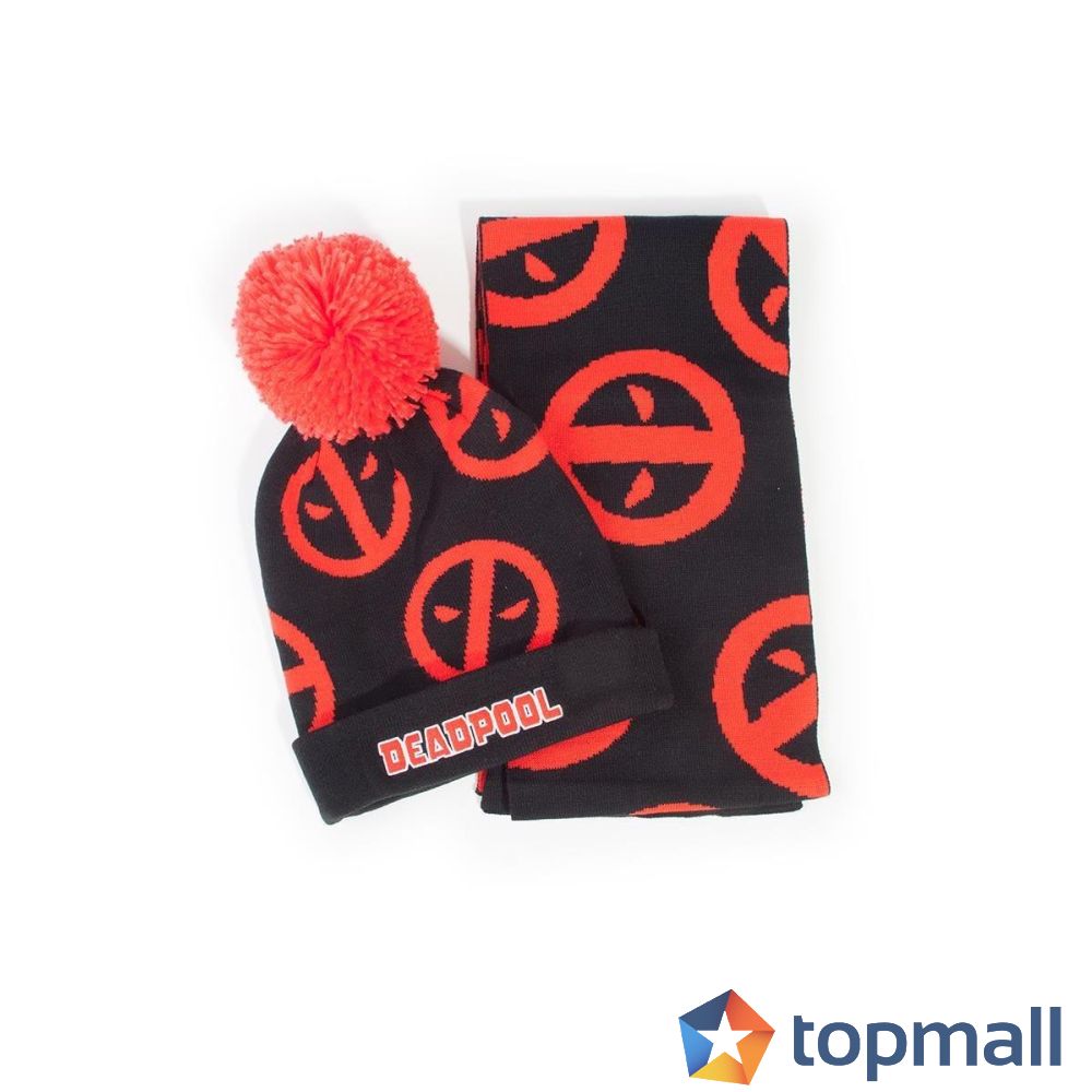 Комплект шал и шапка DIFUZED Deadpool, Symbol, Черен/Червен, (35935582)