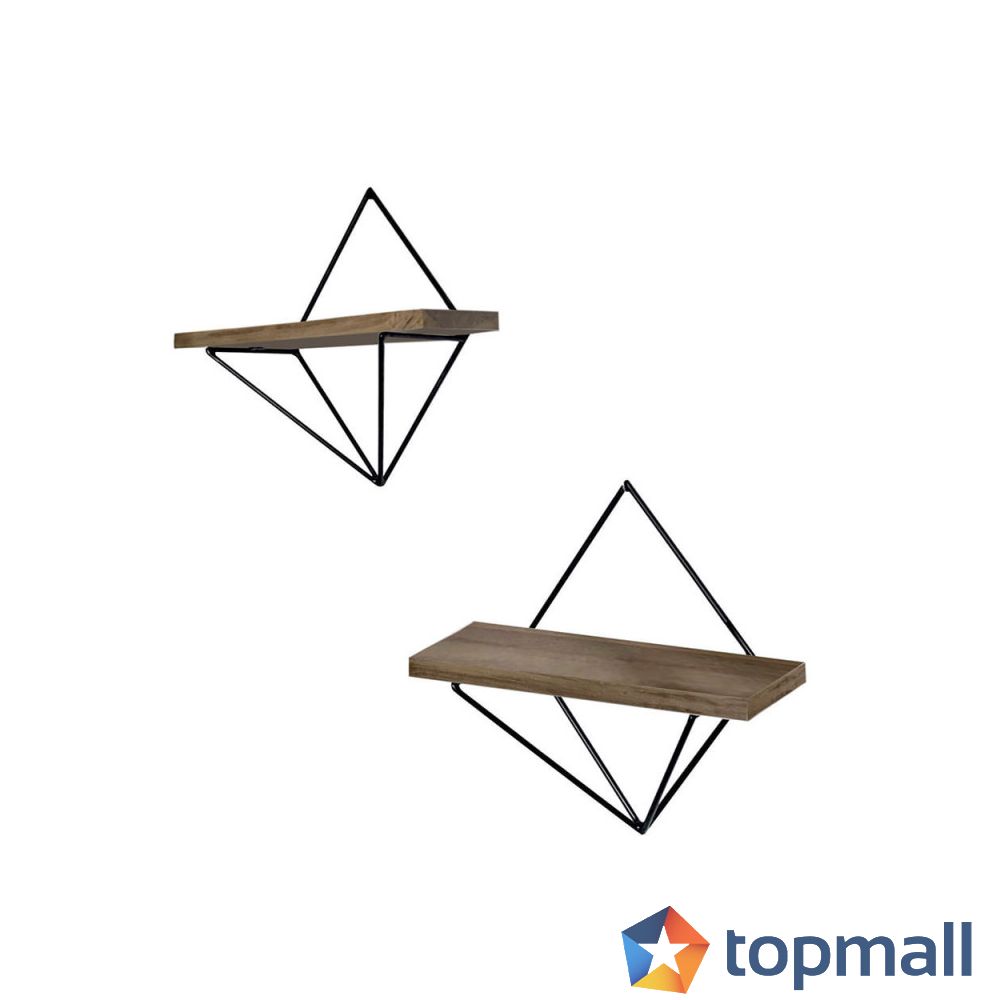 Комплект стенни етажерки Evila Originals 792EVL2868, 2 броя, Дърво от смърч/метал, 30х14 см, Кафяв/черен, (792EVL2868)