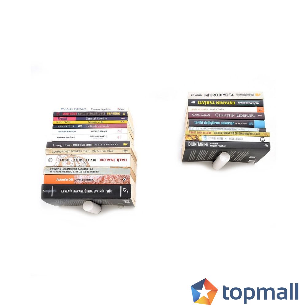 Комплект стенни поставки за книги Evila Originals 792EVL2838, 21х15 см, Дърво, Метал, Бял/черен, (792EVL2838)