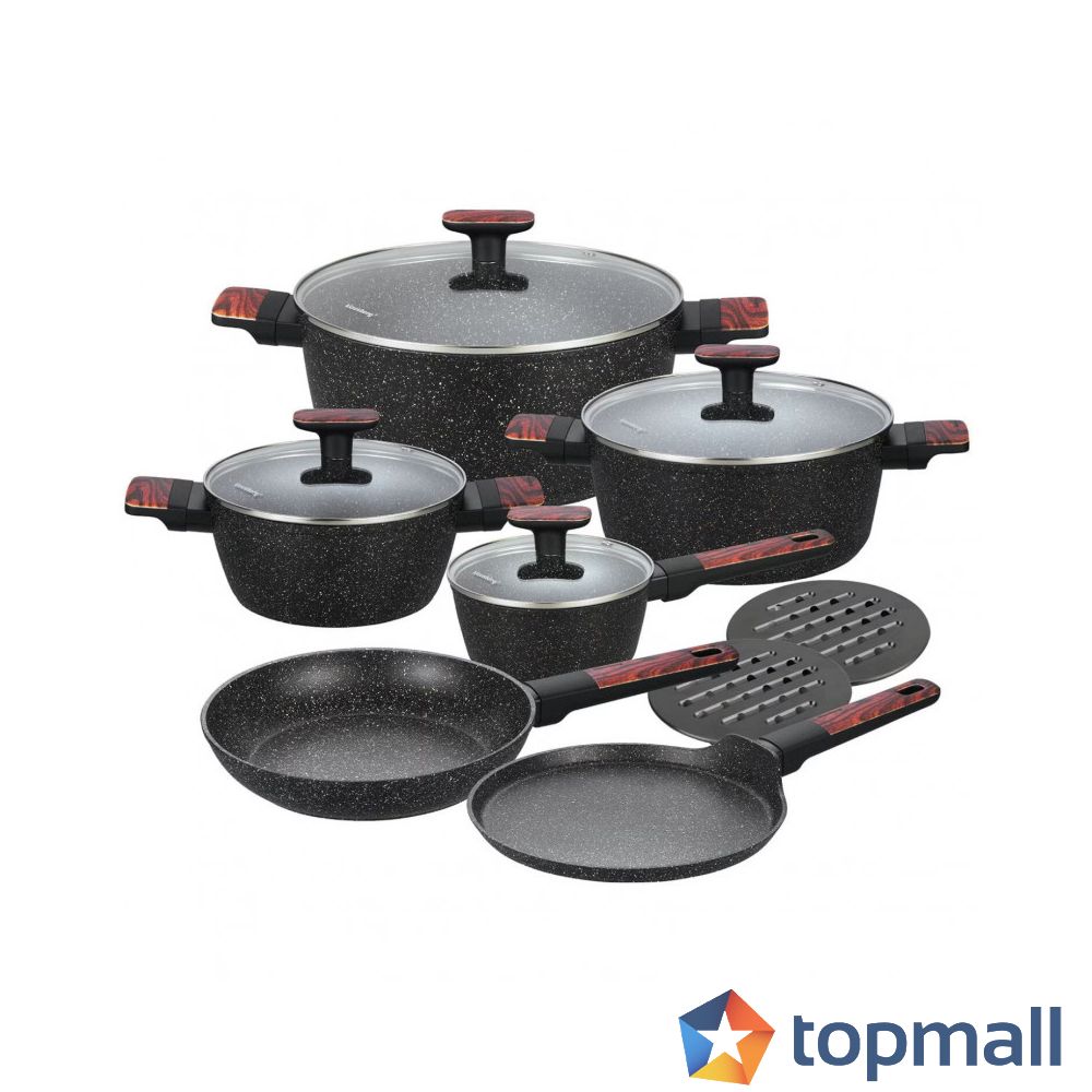 Комплект тенджери и тигани Klausberg KB 7831, 12 ч, Отливка, Мраморно покритие, Индукция, Черен, (35930872)