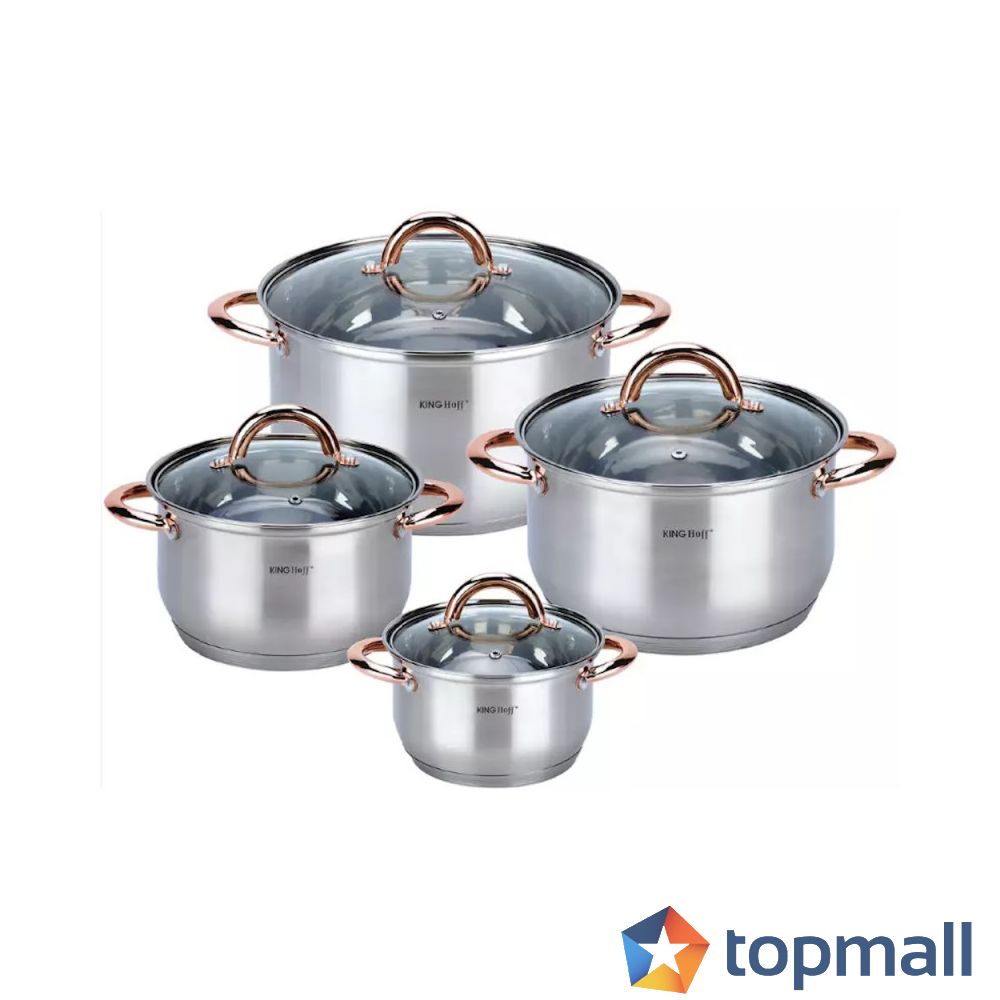 Комплект тенджери Kinghoff KH 1763, 8 части, 2.1-6.6 l, Индукция, Инокс/меден, (22061)