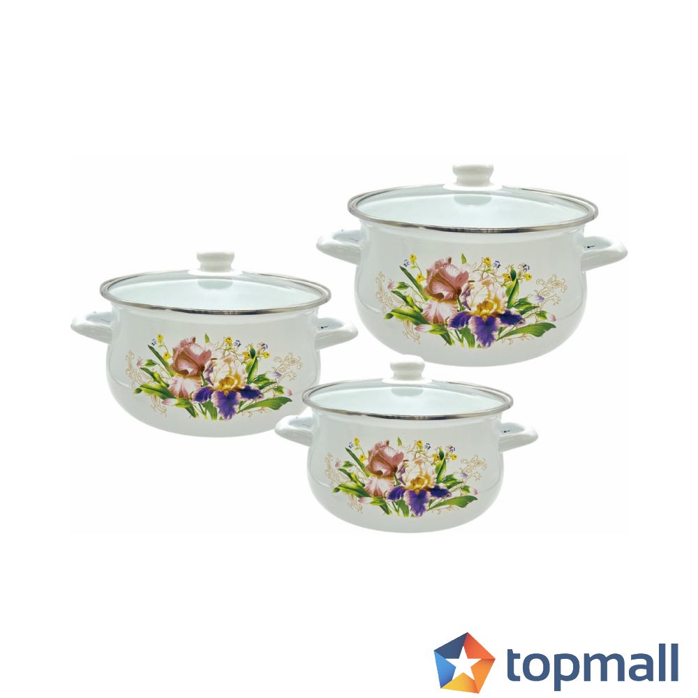 Комплект тенджери Rosberg R54518D3G, 6 ч, 2-3.6 L, Емайл, Индукция, Цветна декорация, (17748)