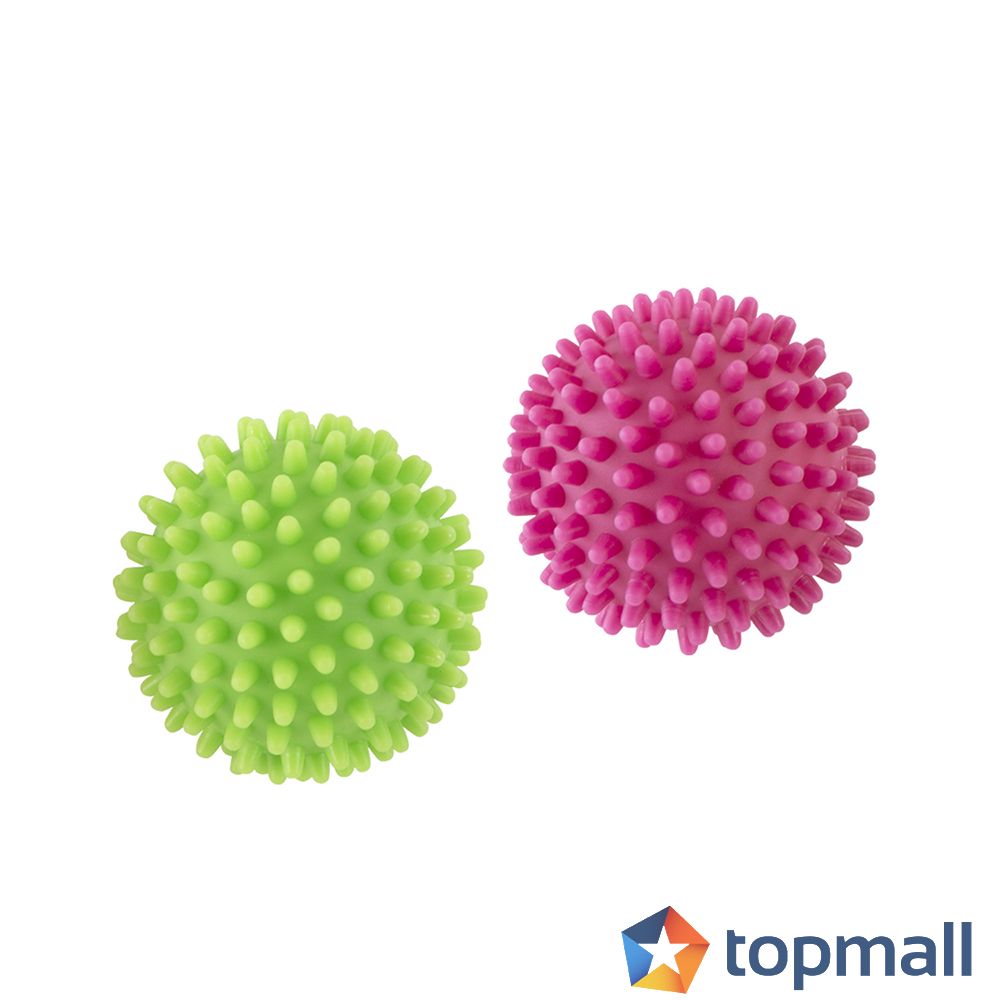 Предназначени за употреба в пералня и сушилня. Помагат прането да остане по-меко и по-пухкаво, както и да се намали времето за сушене. Комплектът включва: - топки - 2 броя в различни цветове Размер: Ø6.5cm Изработени от безопасна устойчива пластмаса, предназначена за многократна употреба. Пазете от деца и не използвайте като играчка за домашни любимци.